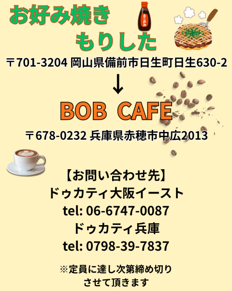 お問い合わせ、ご参加の方はドゥカティ大阪イーストまたはドゥカティ兵庫まで