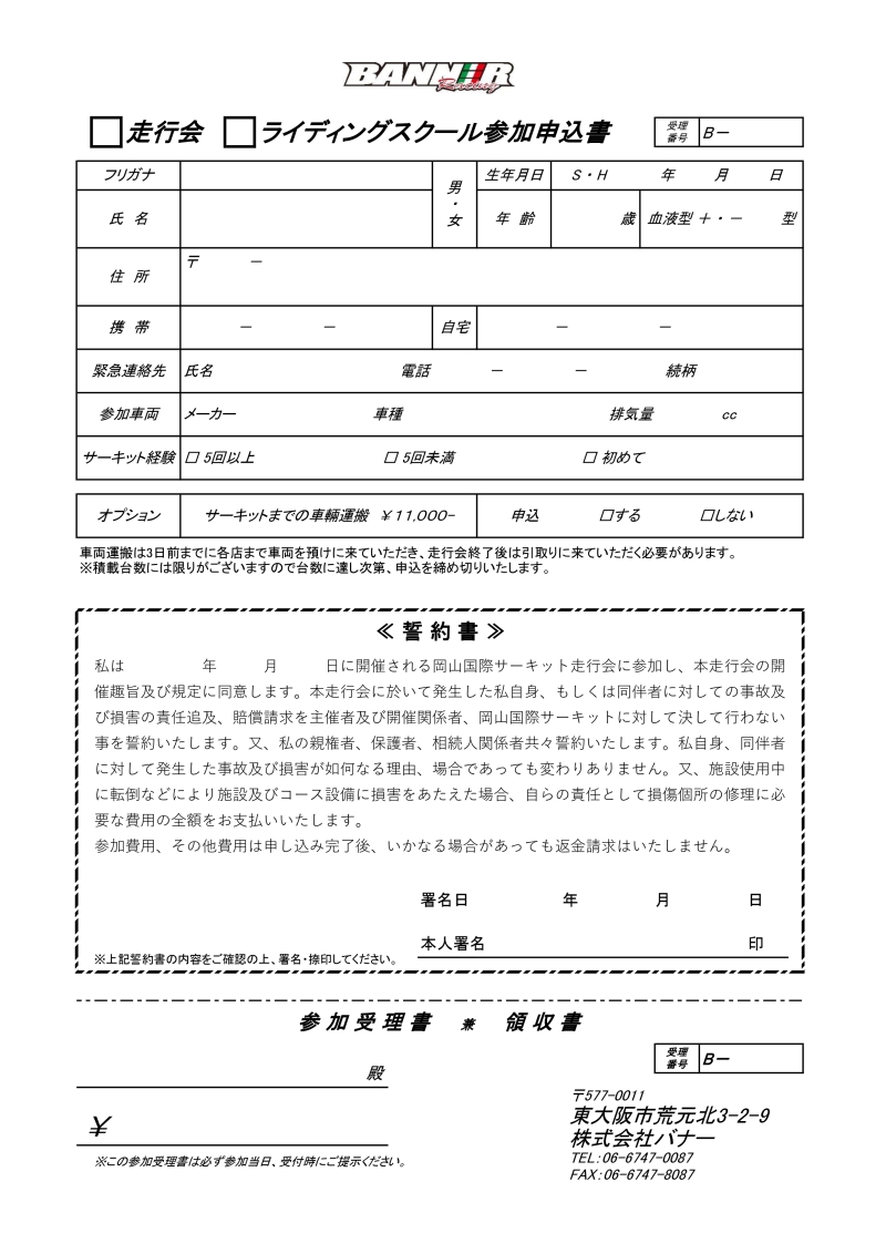ご参加希望の方は、下記お申込み用紙をダウンロードいただき ドゥカティ大阪イースト か ドゥカティ兵庫店まで