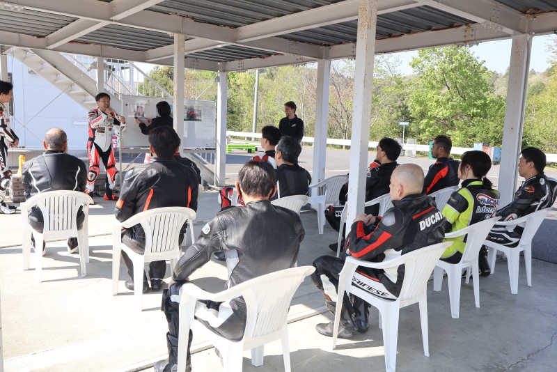 岡山国際サーキット本コースの走行前にミニコースを使ってしっかりとライディング講習を受けられます。